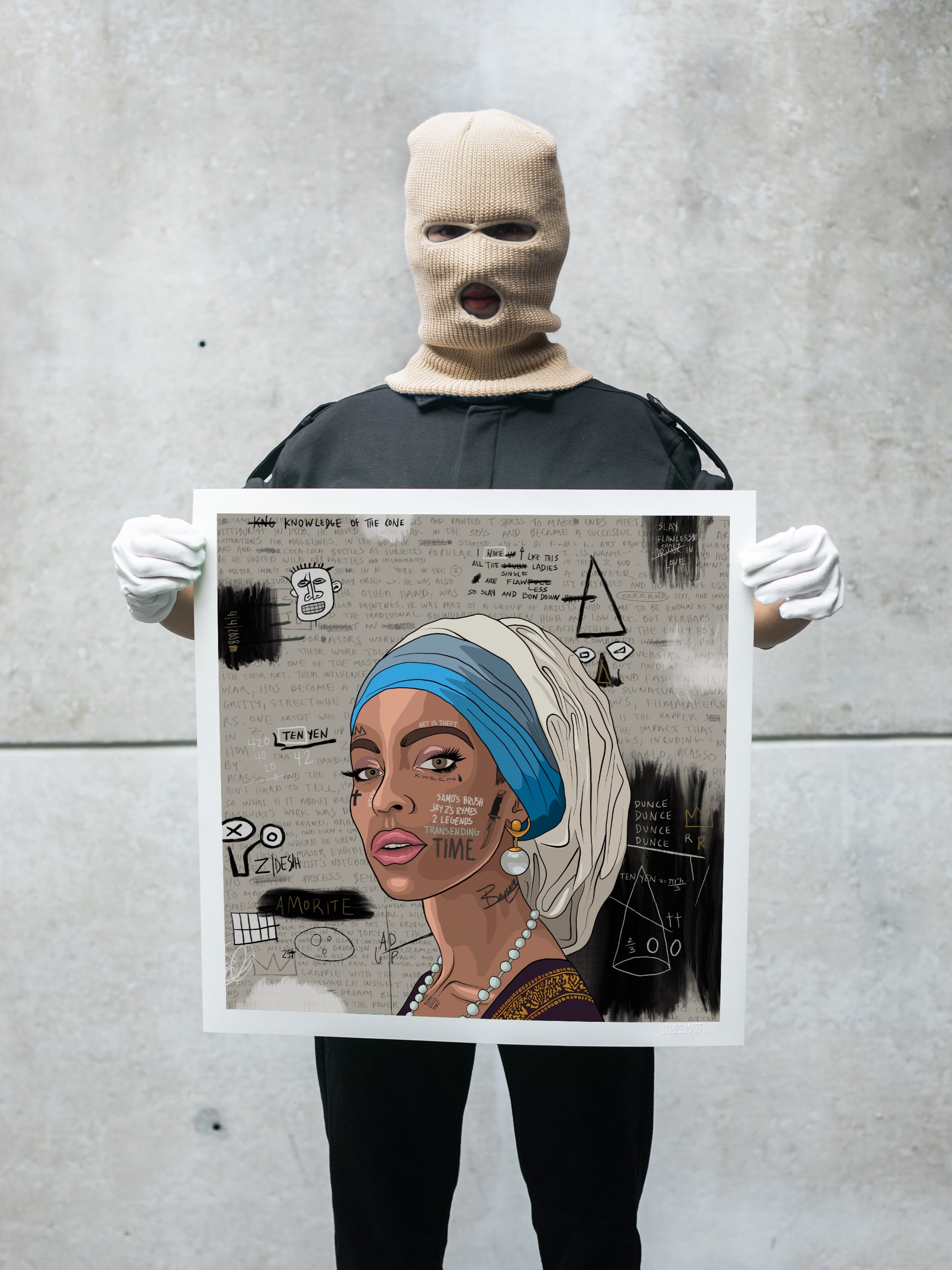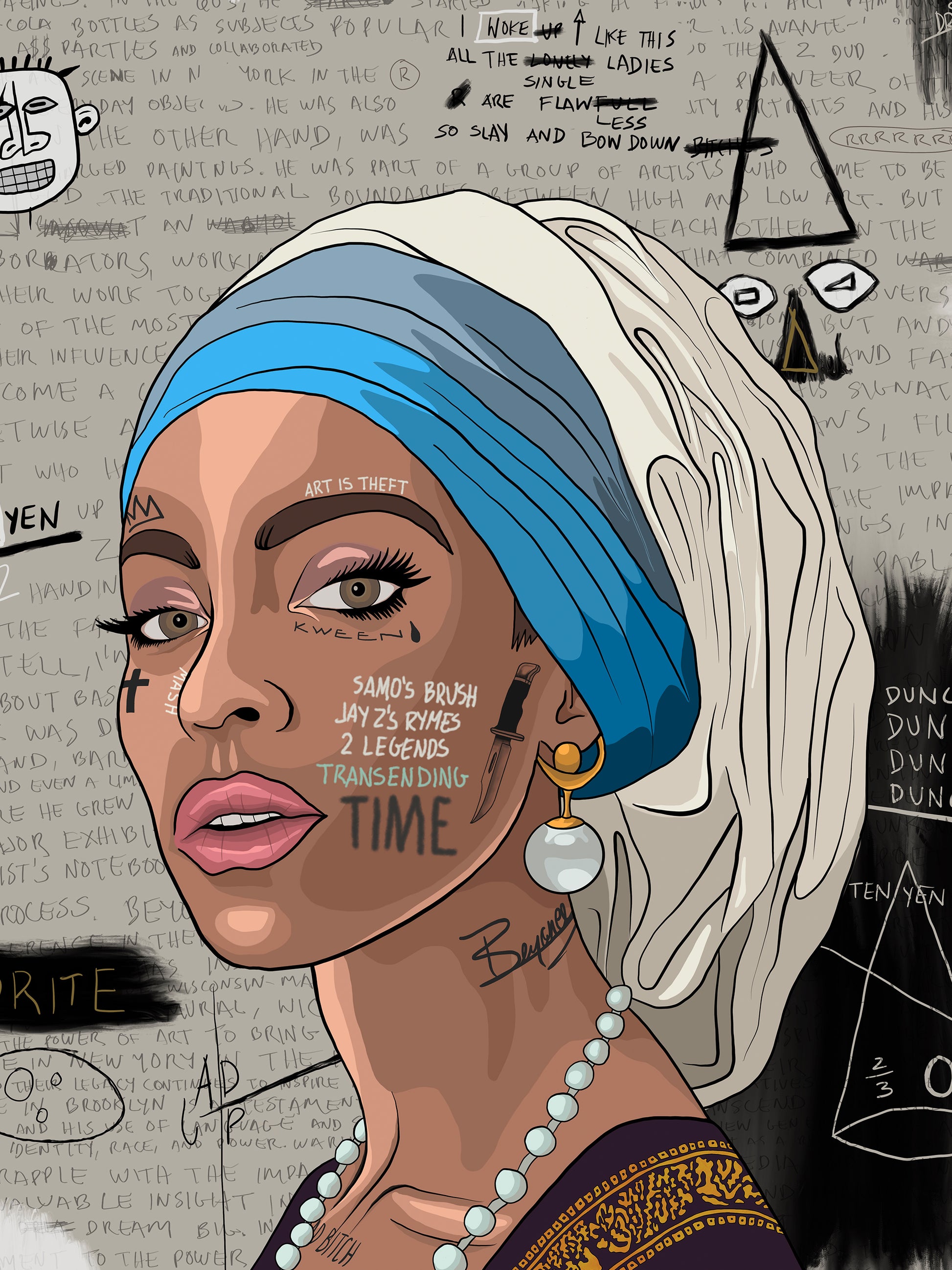 - "SAMÓS GIRL WITH A PEARL" is a digitally illustrated of Jean Michel Basquiat´s version of Johannes Vermeer´s "Girl with a pearl".