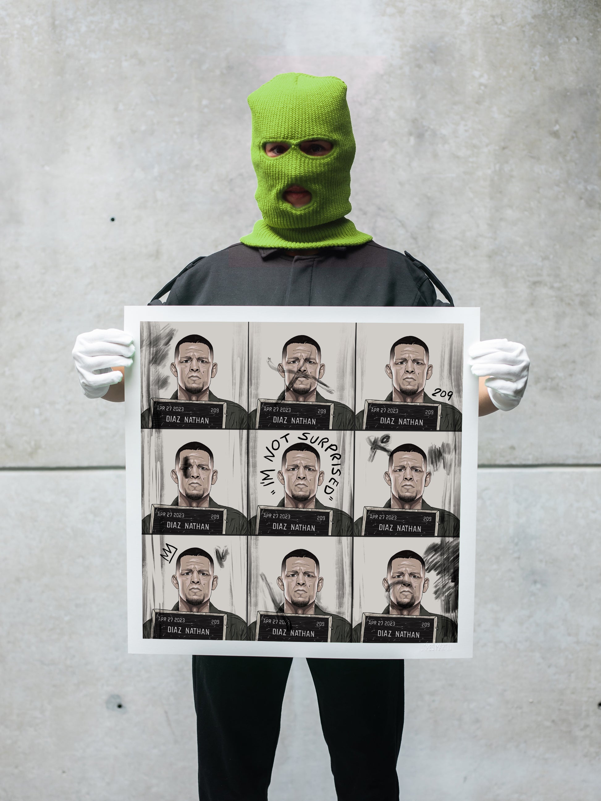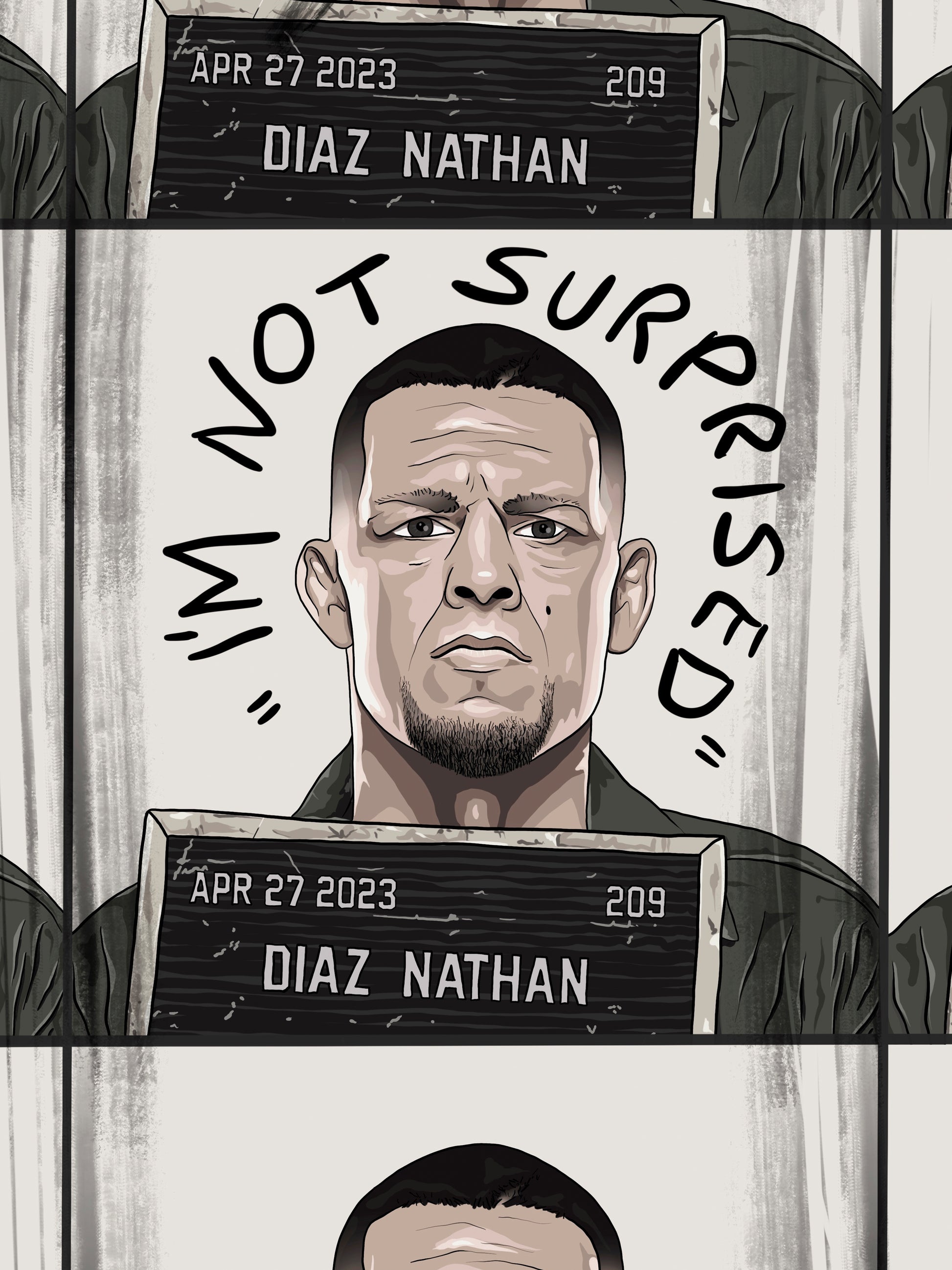 - "Stockton´s Elvis" is a digitally illustrated artwork of Nate Diaz, UFC legend. It is also a tribute to the 1970 infamous Elvis Mugshot.
