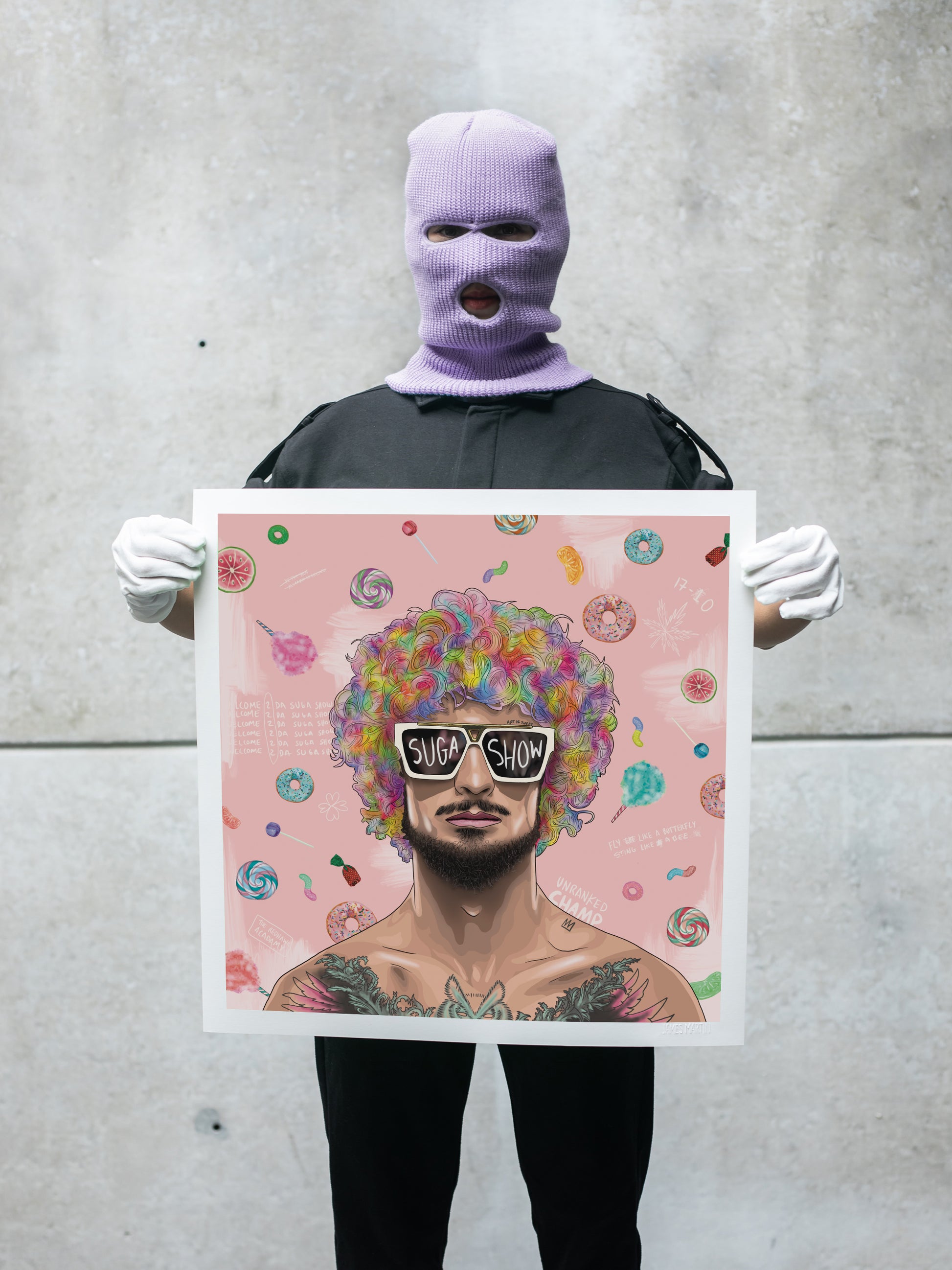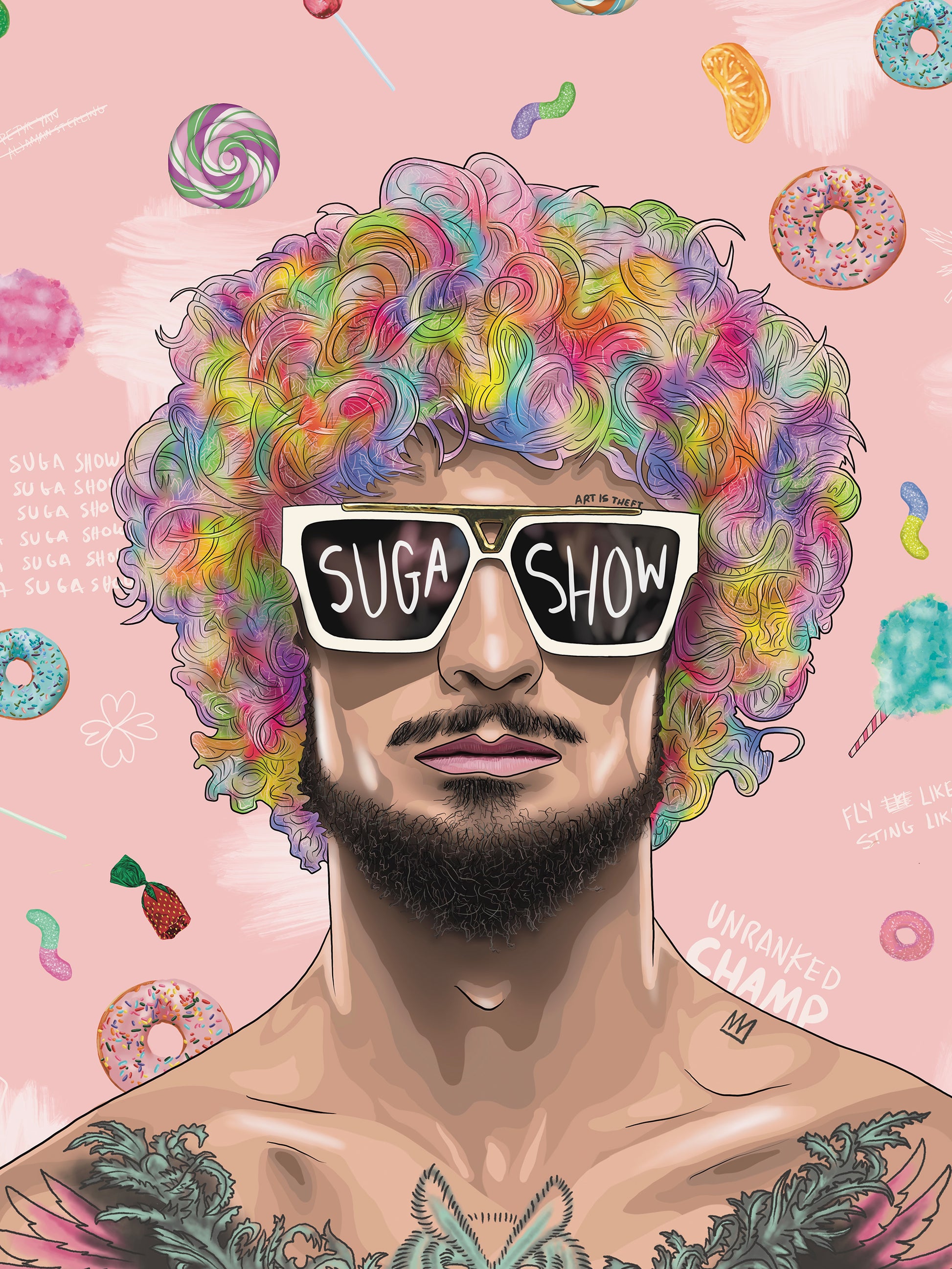 - "Suga Show" is a digitally illustrated artwork of Sean O´Malley, UFC Bantamweight Champion.