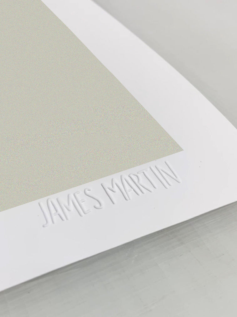 - The embossed James Martin signature logo is featured in the bottom right-hand corner.